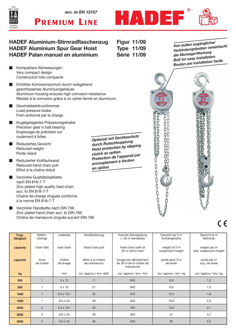 原装进口11/09型手拉葫芦 德国Hadef哈德夫