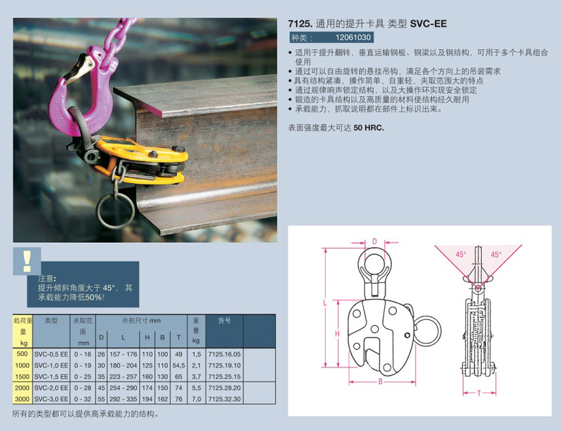 • 适用于提升翻转,垂直运输钢板、钢梁以及钢结构,可用于多个卡具组合使用