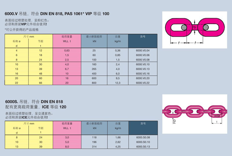 6000.V 吊链,符合 DIN EN 818, PAS 1061* VIP 等级 100