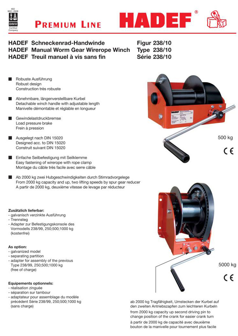 墙装式手摇绞盘 238/10 Hadef哈德夫手动绞盘